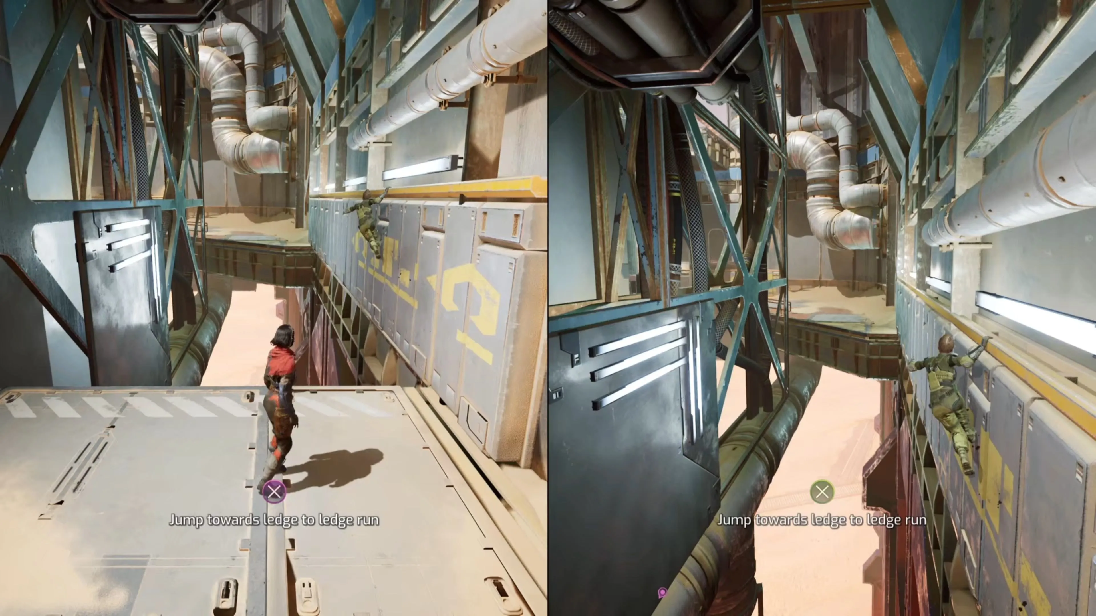 Cơ chế tiếp theo của bạn là chạy tường trên vách treo (hanging wall run). Cơ chế này hoạt động hoàn toàn giống như chạy tường thông thường và thậm chí còn an toàn hơn để quản lý vì các nhân vật của bạn sẽ luôn bám vào một gờ tường.